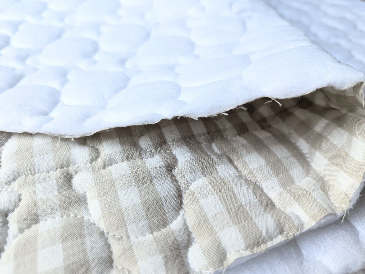 【予約】くまキルティング×ベージュギンガムチェック ヌビ 韓国生地 キルト マット 入園入学