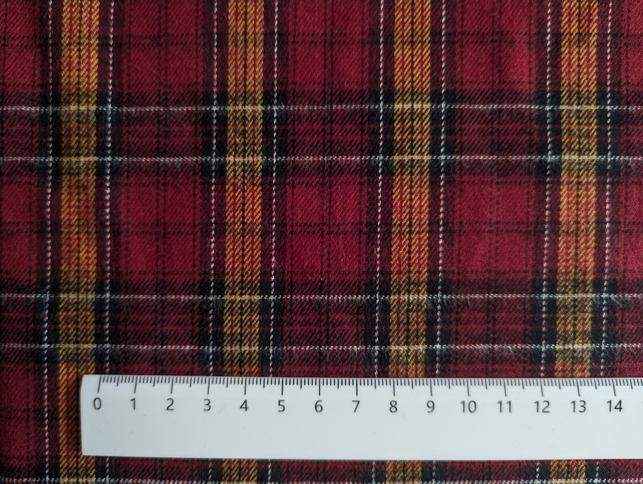 【即納】起毛チェック ④ ワイン☓イエロー コットン 韓国生地 ハンドメイド 秋冬 先染め