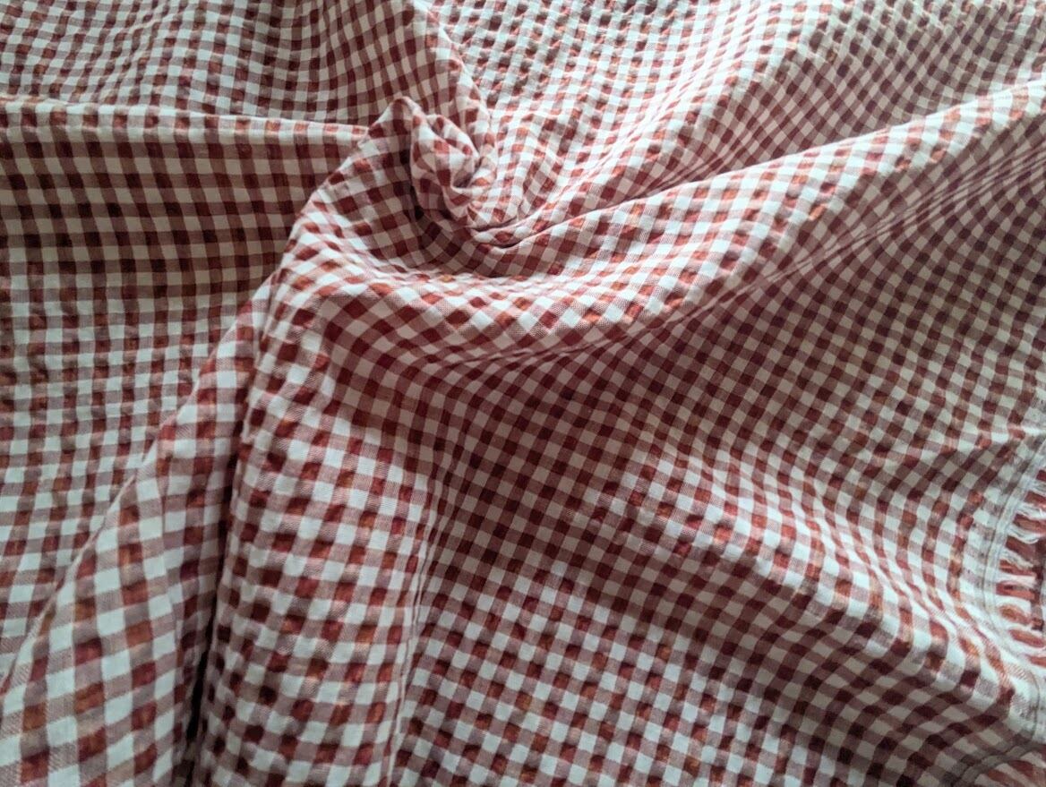【即納】ぽこぽこェック レッド ポリエステル&コットン 韓国生地 ハンドメイド 浴衣 甚平 犬服
