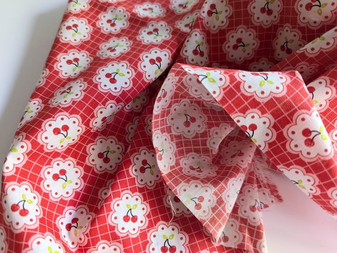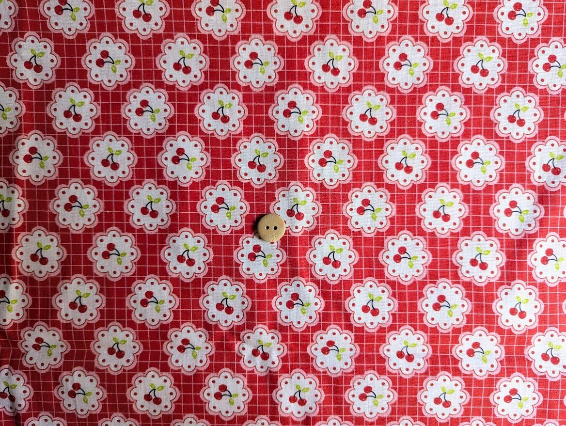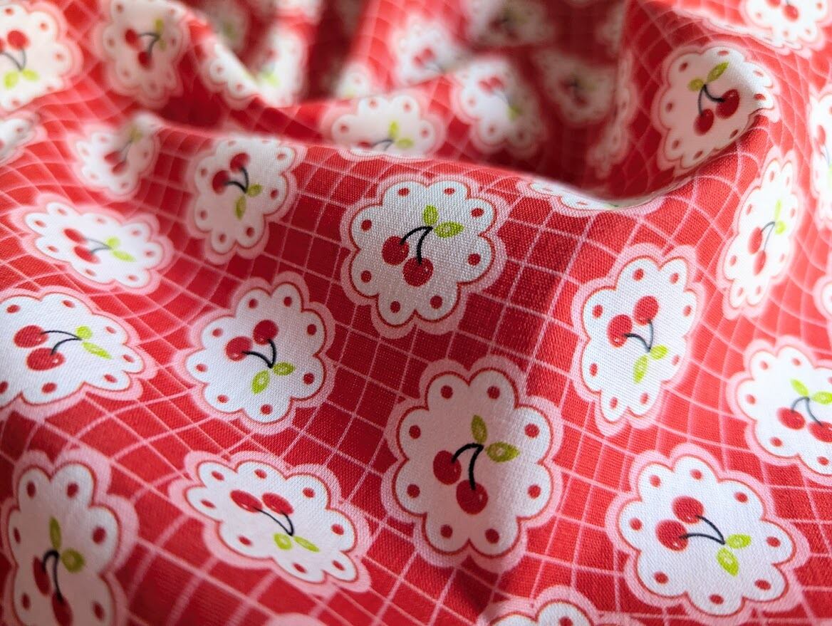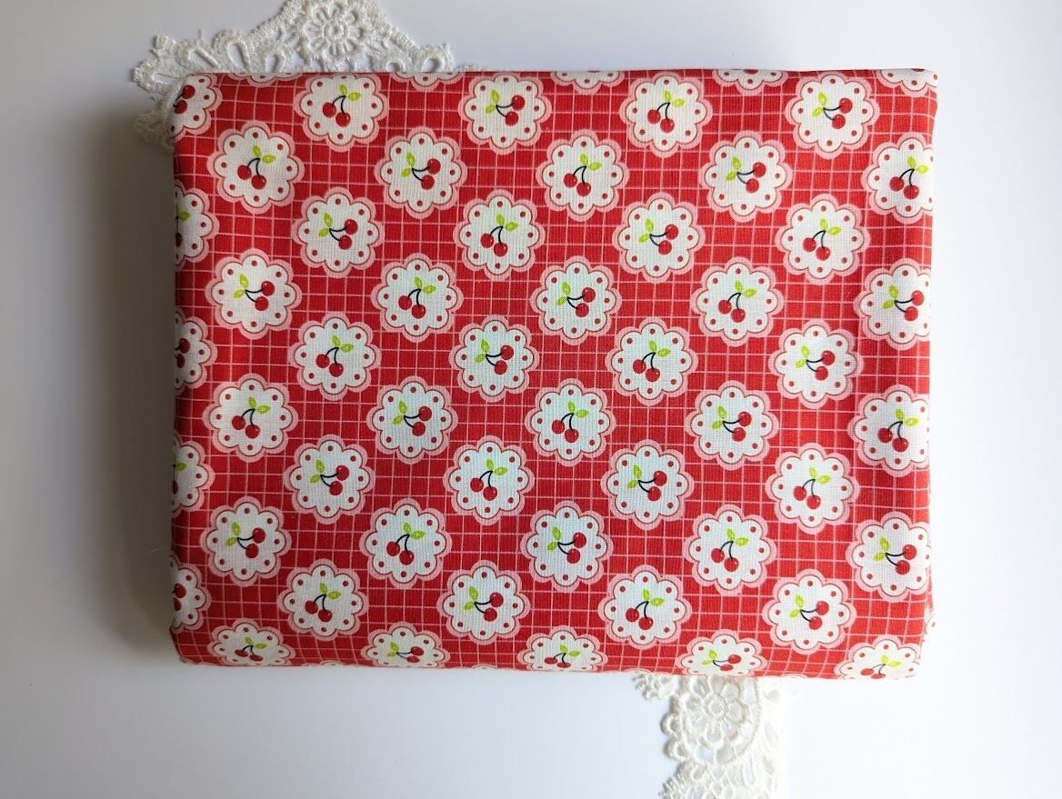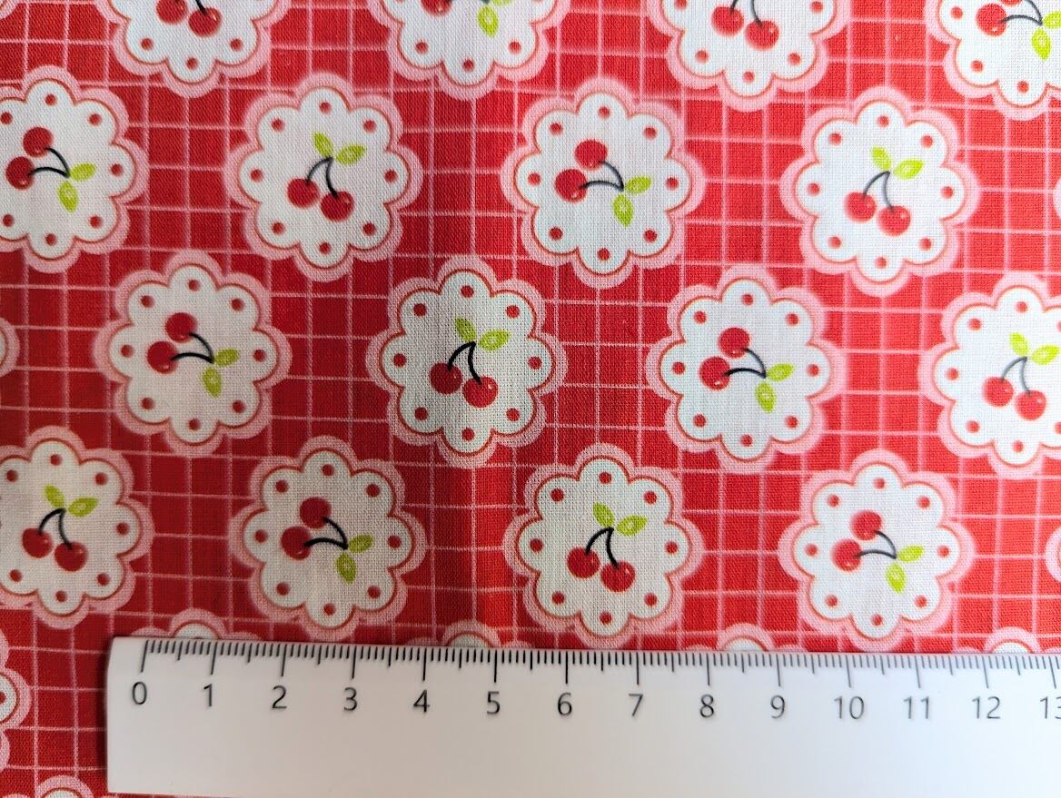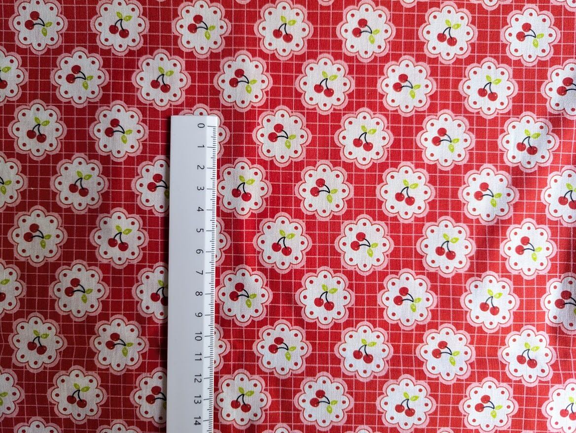 【予約】レトロチェリーのフラワーフレーム DTP30コットン 韓国生地 ハンドメイド さくらんぼ チェック