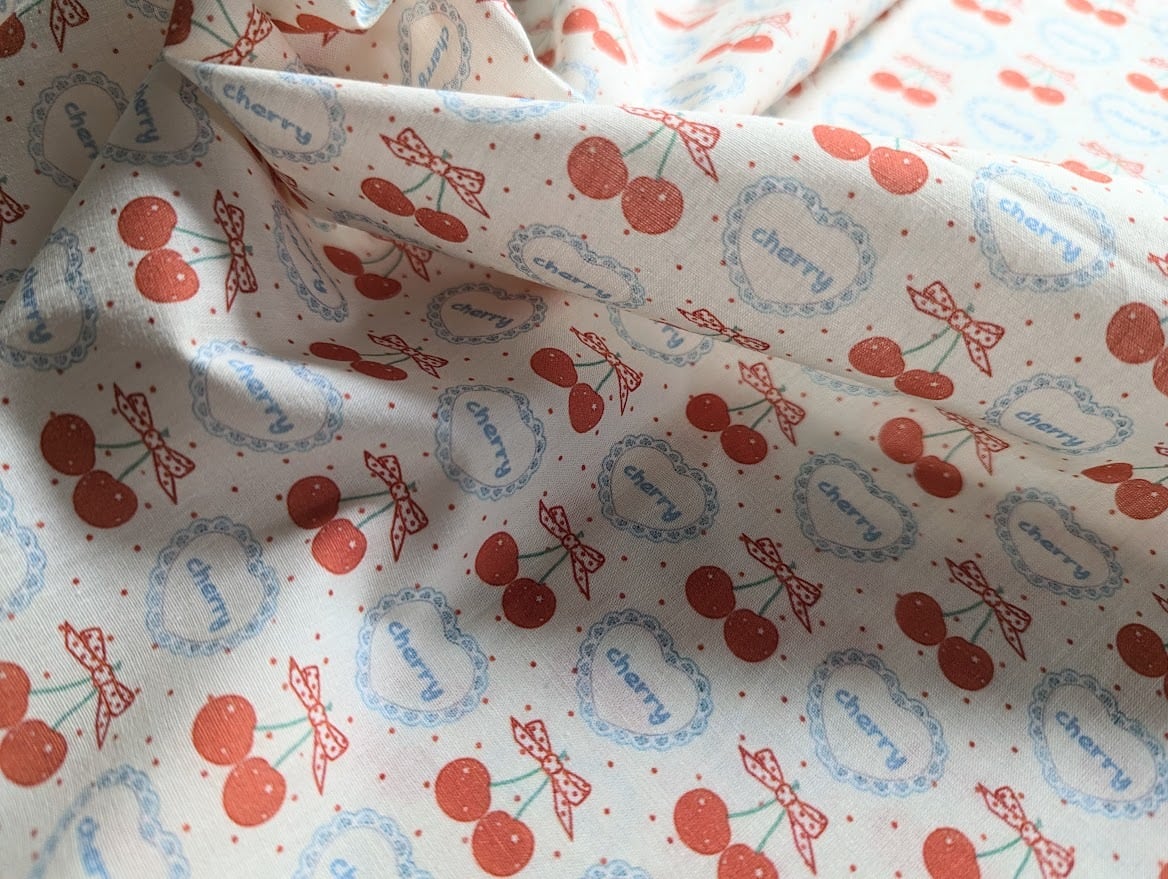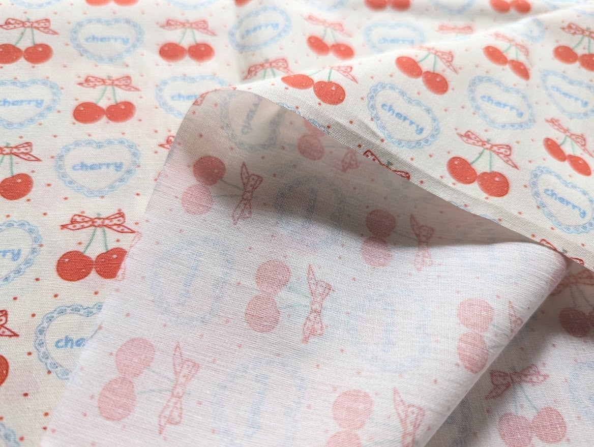 【即納】チェリー&ハートレース DTP30コットン 韓国生地 ハンドメイド さくらんぼ