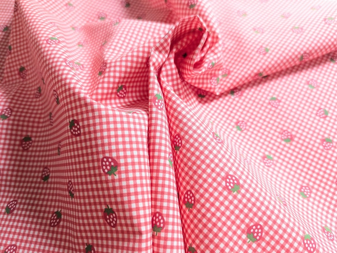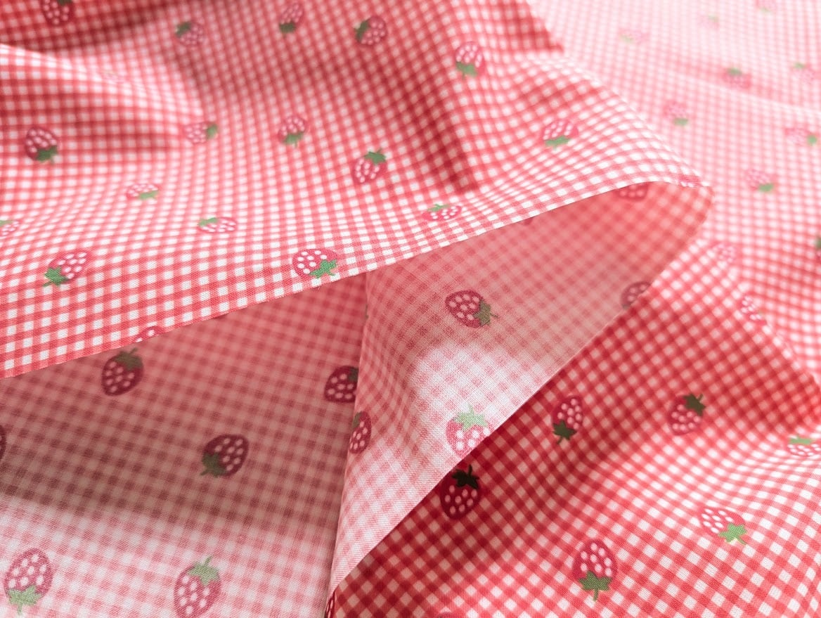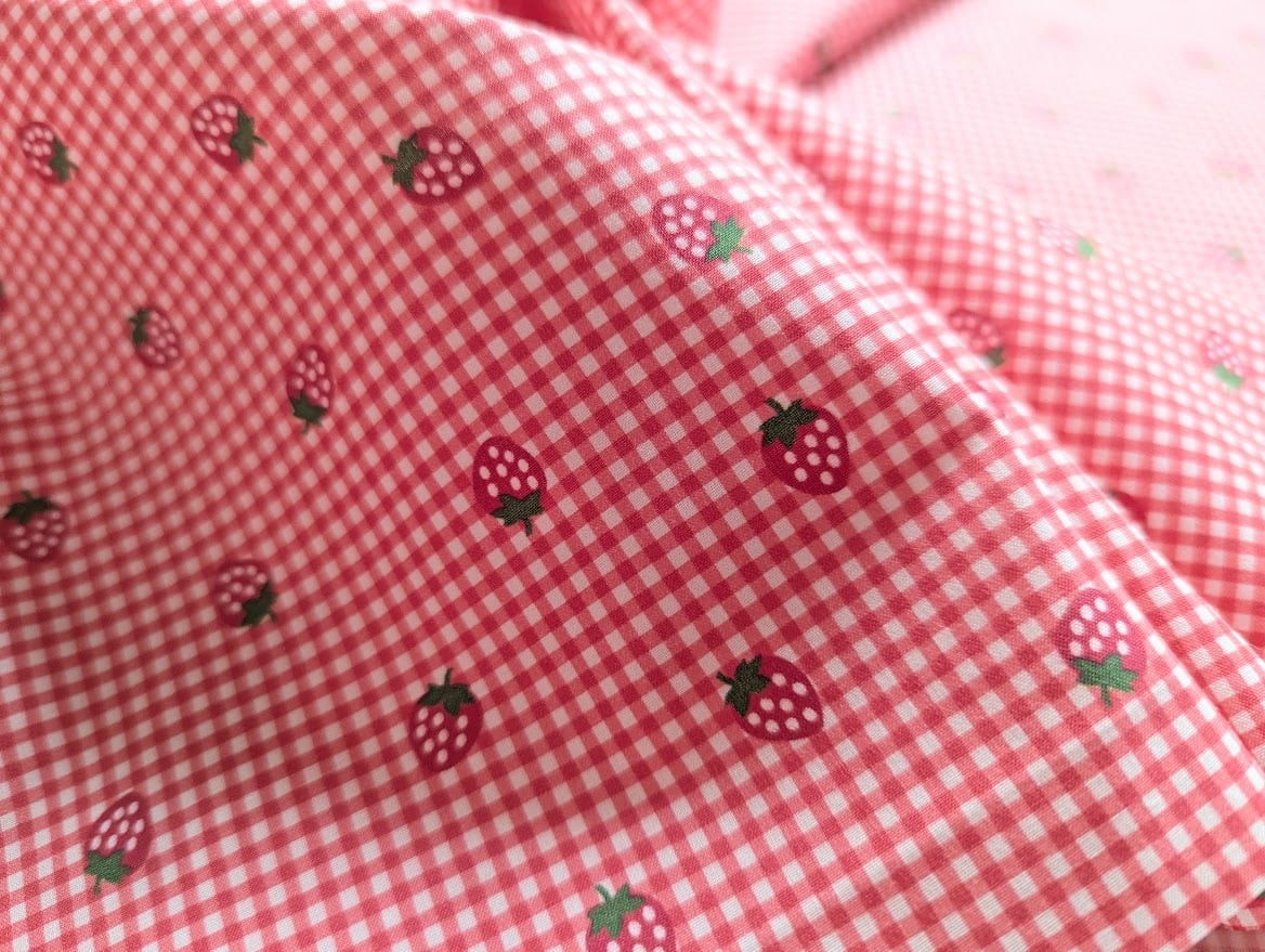 【即納】いちご&チェック DTP30コットン 韓国生地 ハンドメイド