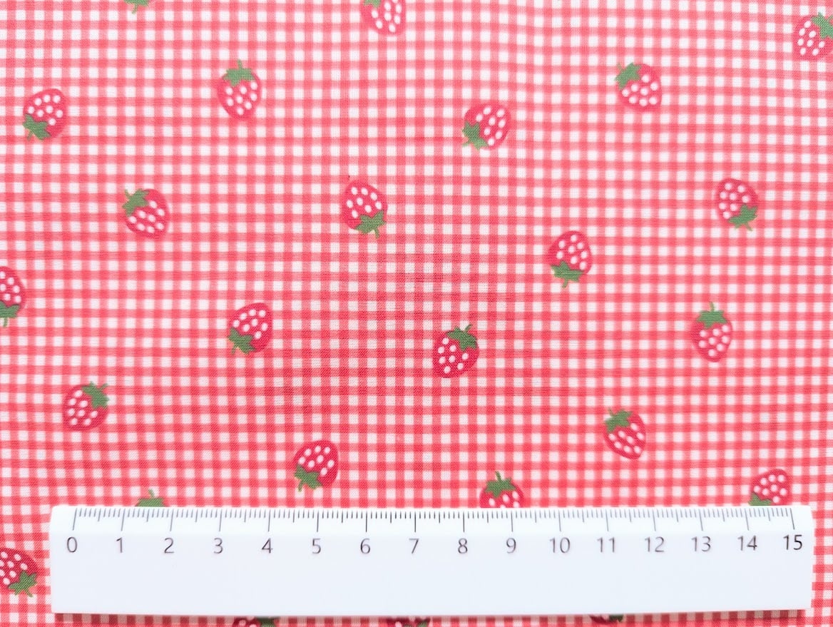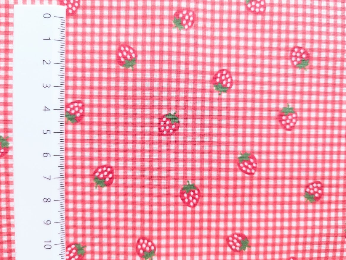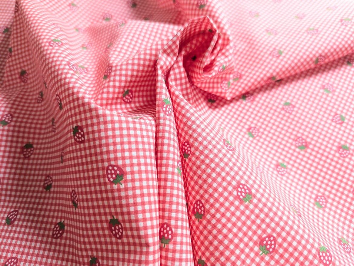 【予約】いちご&チェック DTP30コットン 韓国生地 ハンドメイド