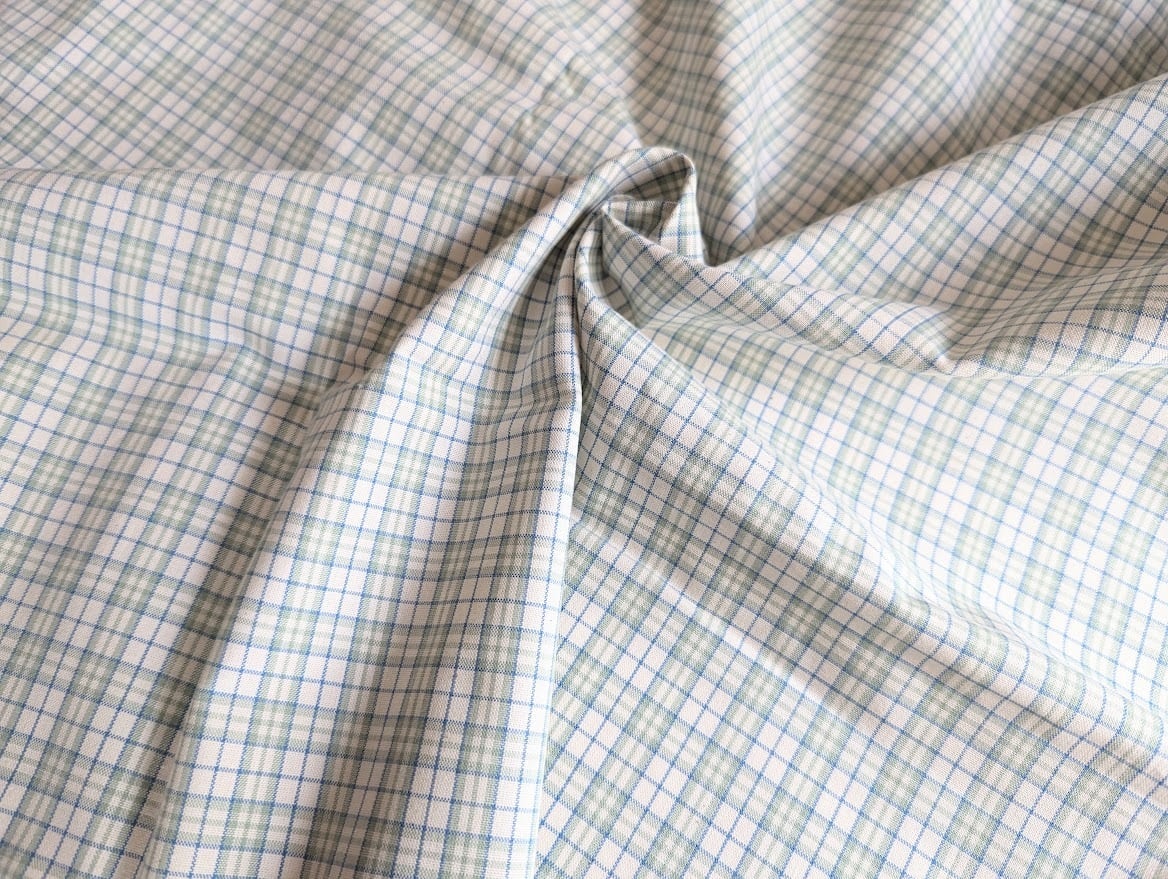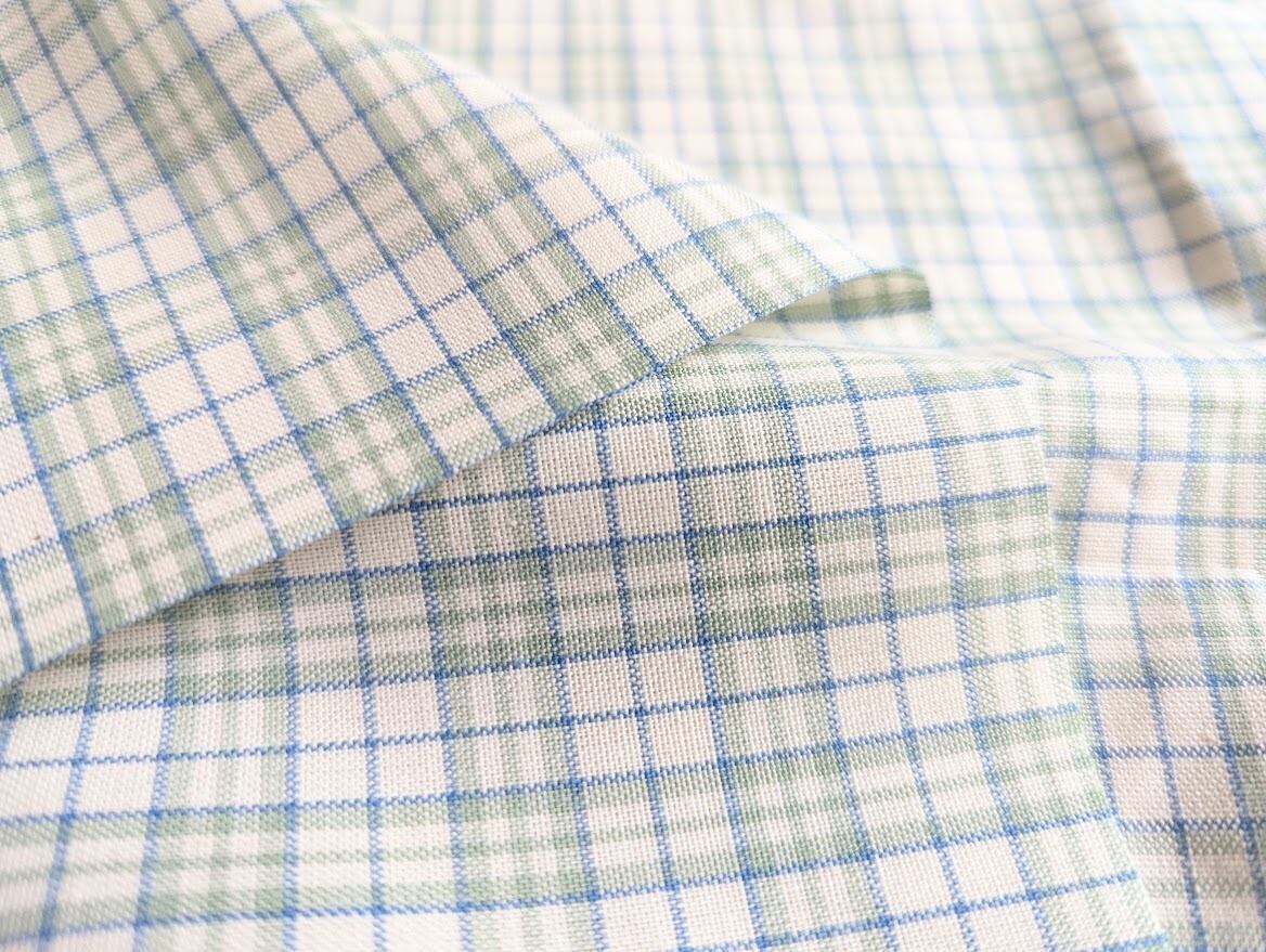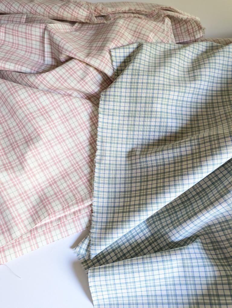 春らしいカラーと小さめチェックがかわいいコットン生地。