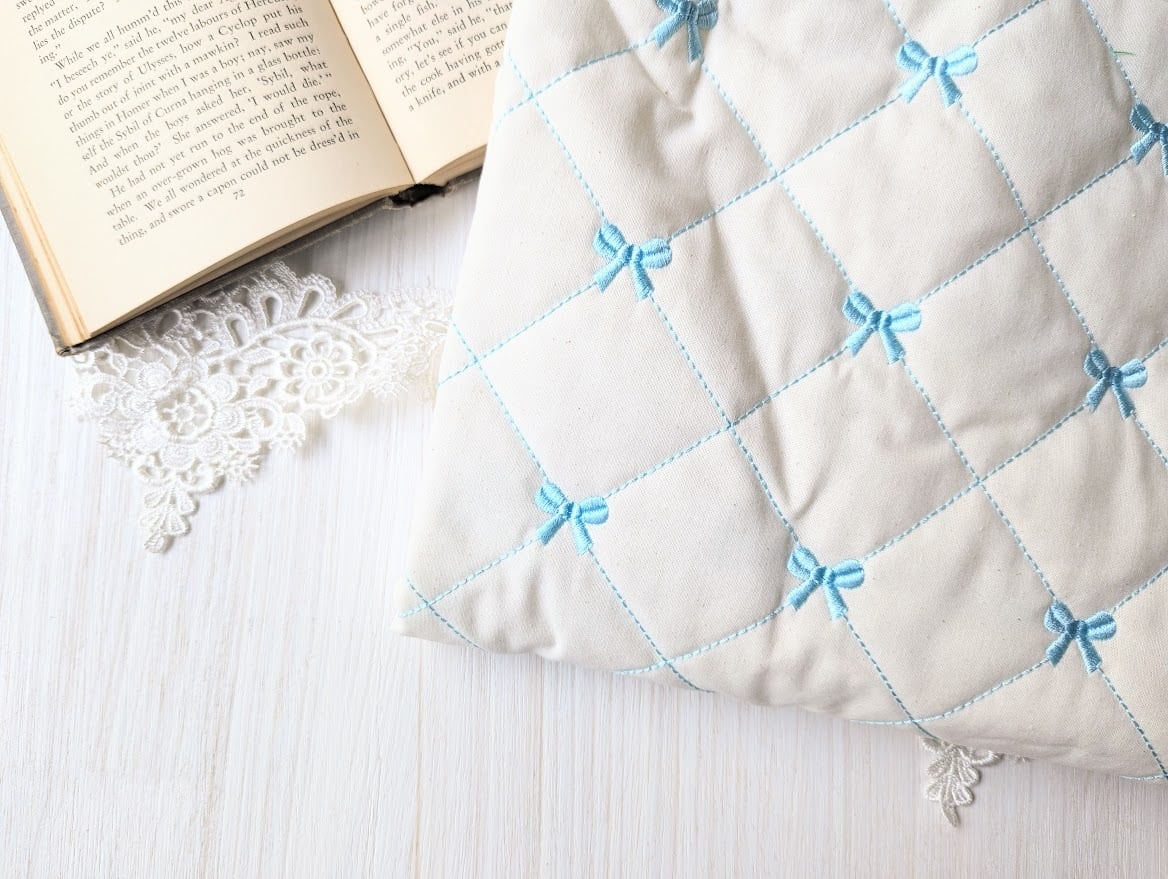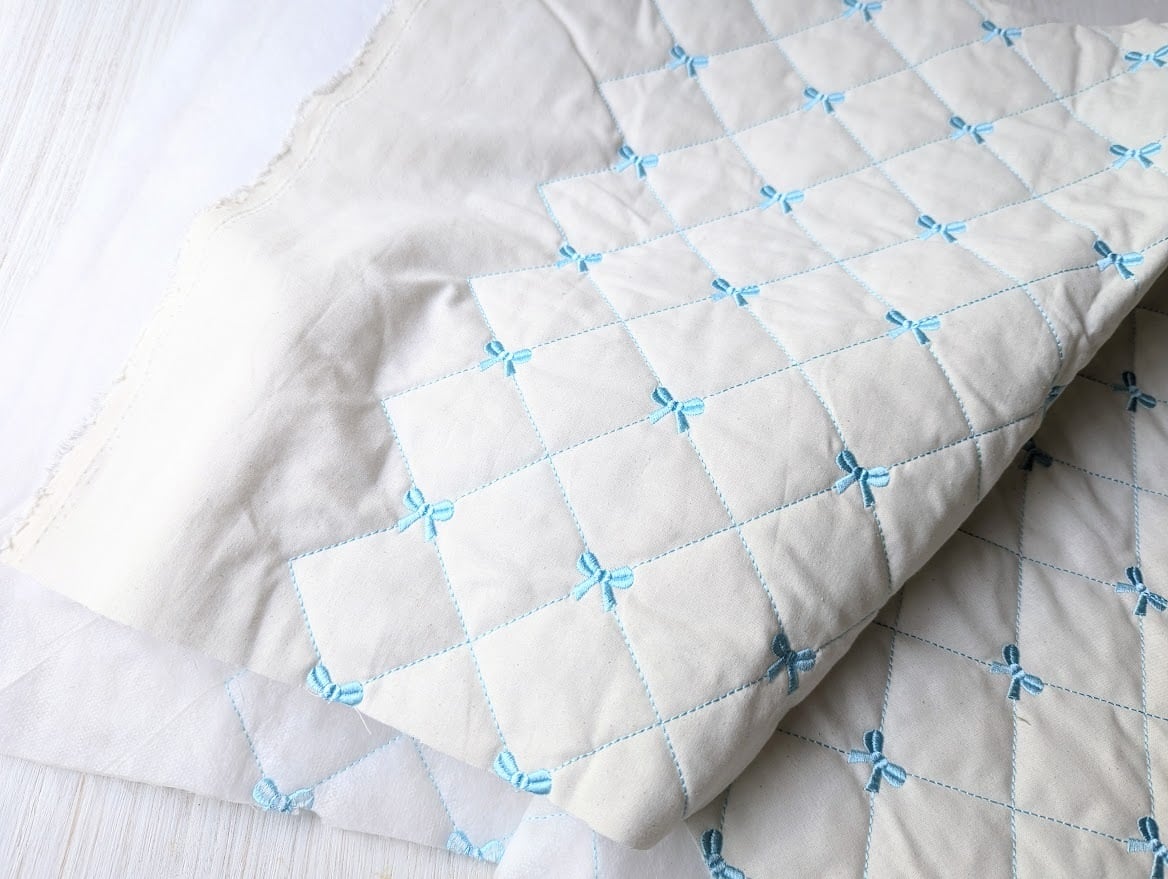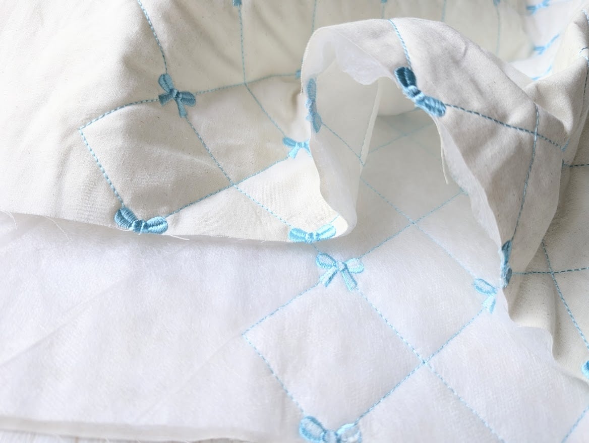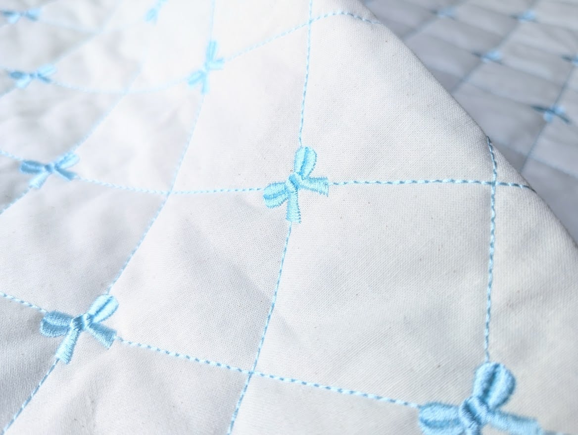 40cmカットクロス【即納】リボン刺繍入りガーリーキルティング ヌビ 韓国生地 キルト マット 入園入学