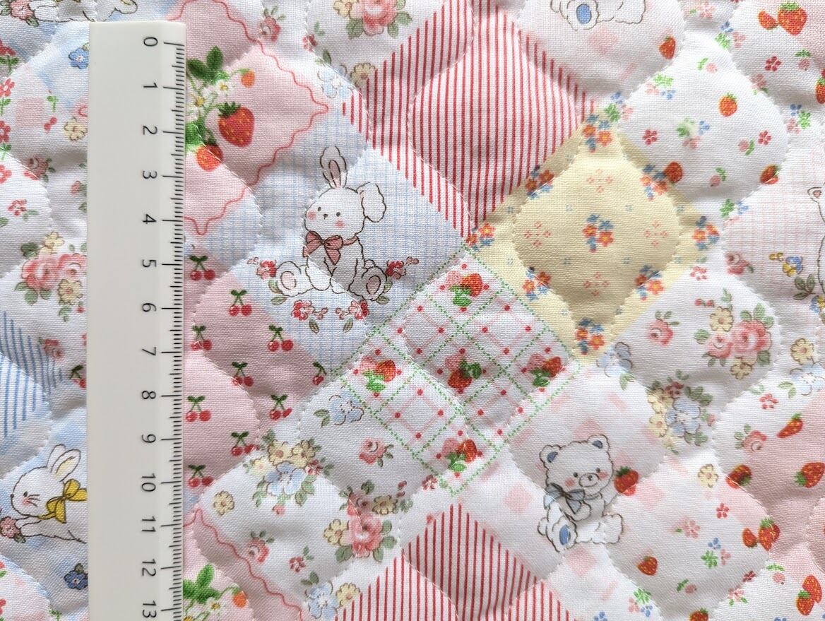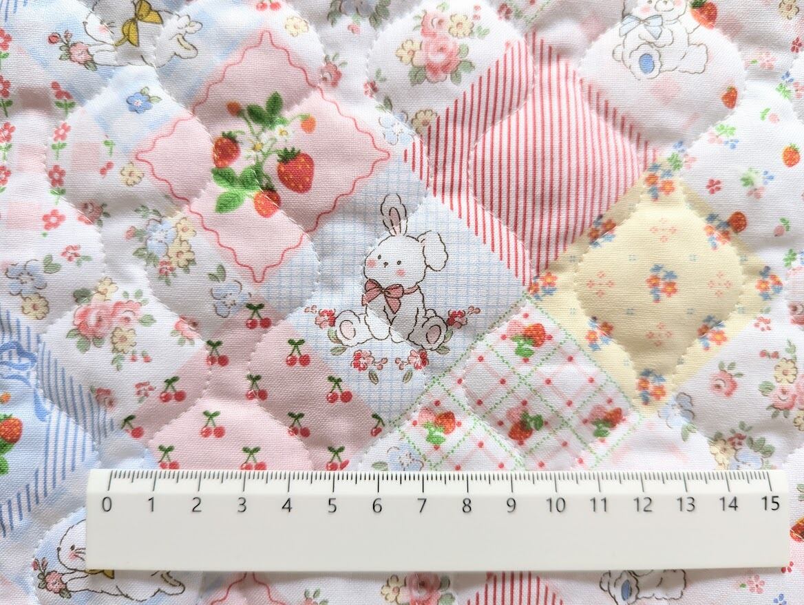 ストライプデザインとパッチワーク風デザインのキルティング生地です。