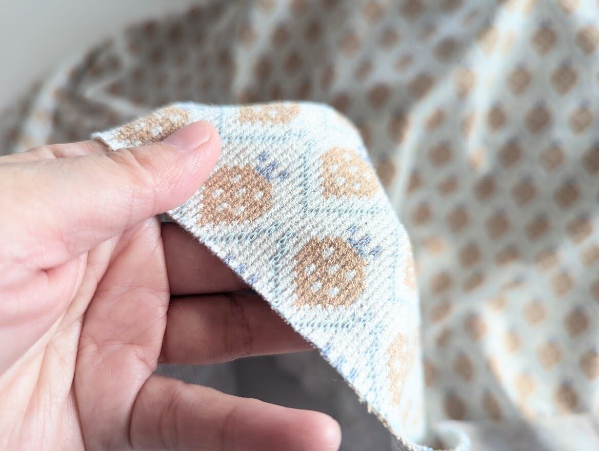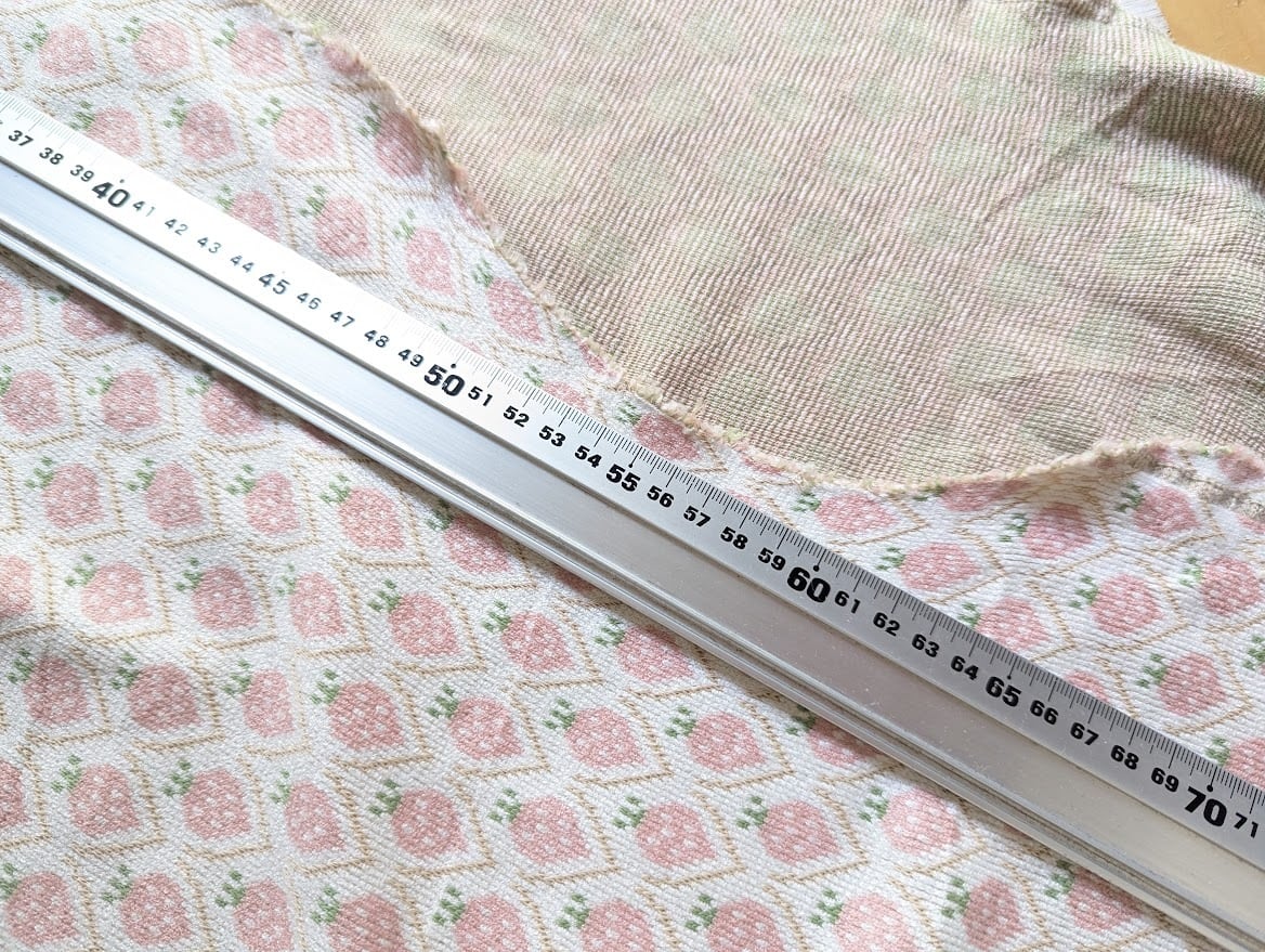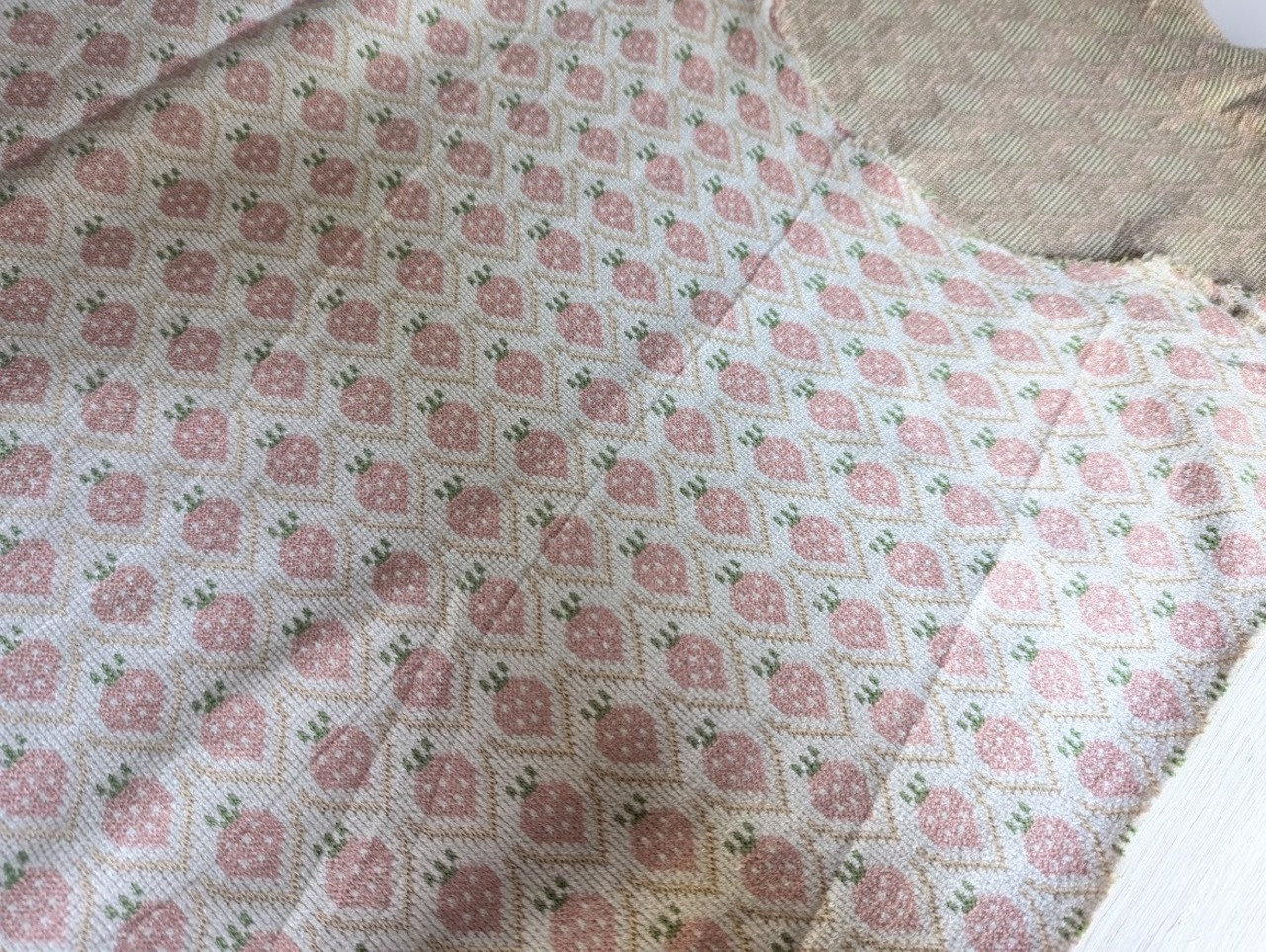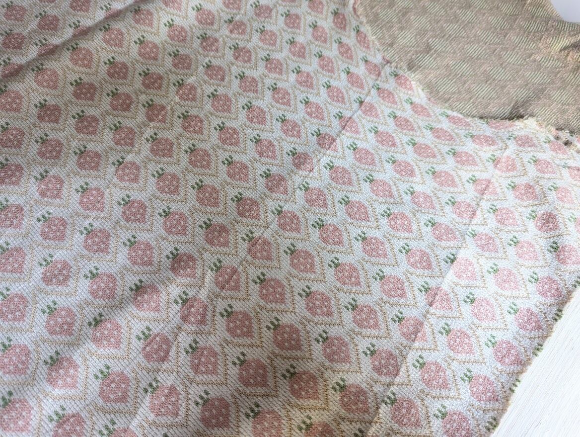 いちごが規則的に並ぶデザインで、子ども服や小物づくりにぴったりの控えめな甘さが魅力。