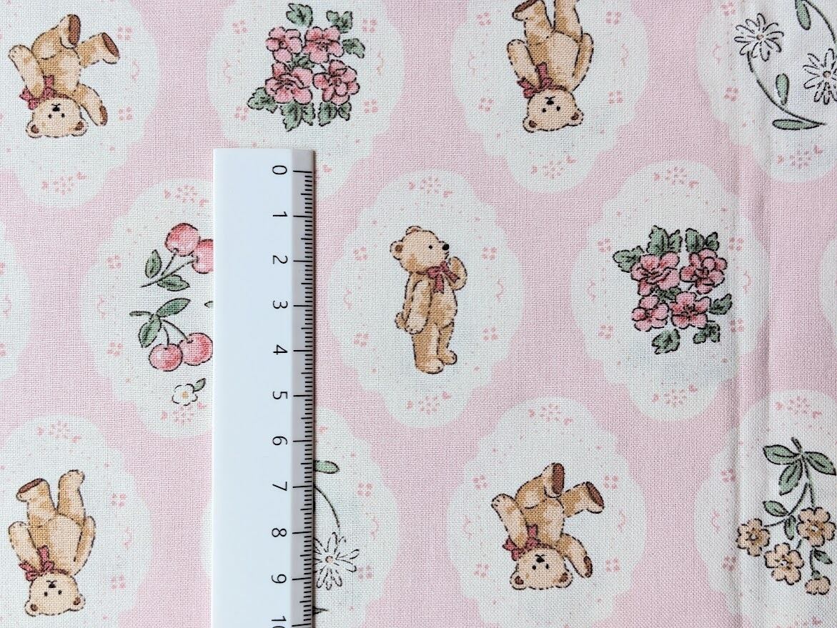 おしゃれなドイリーの中にくまちゃんやお花が並んでいます。